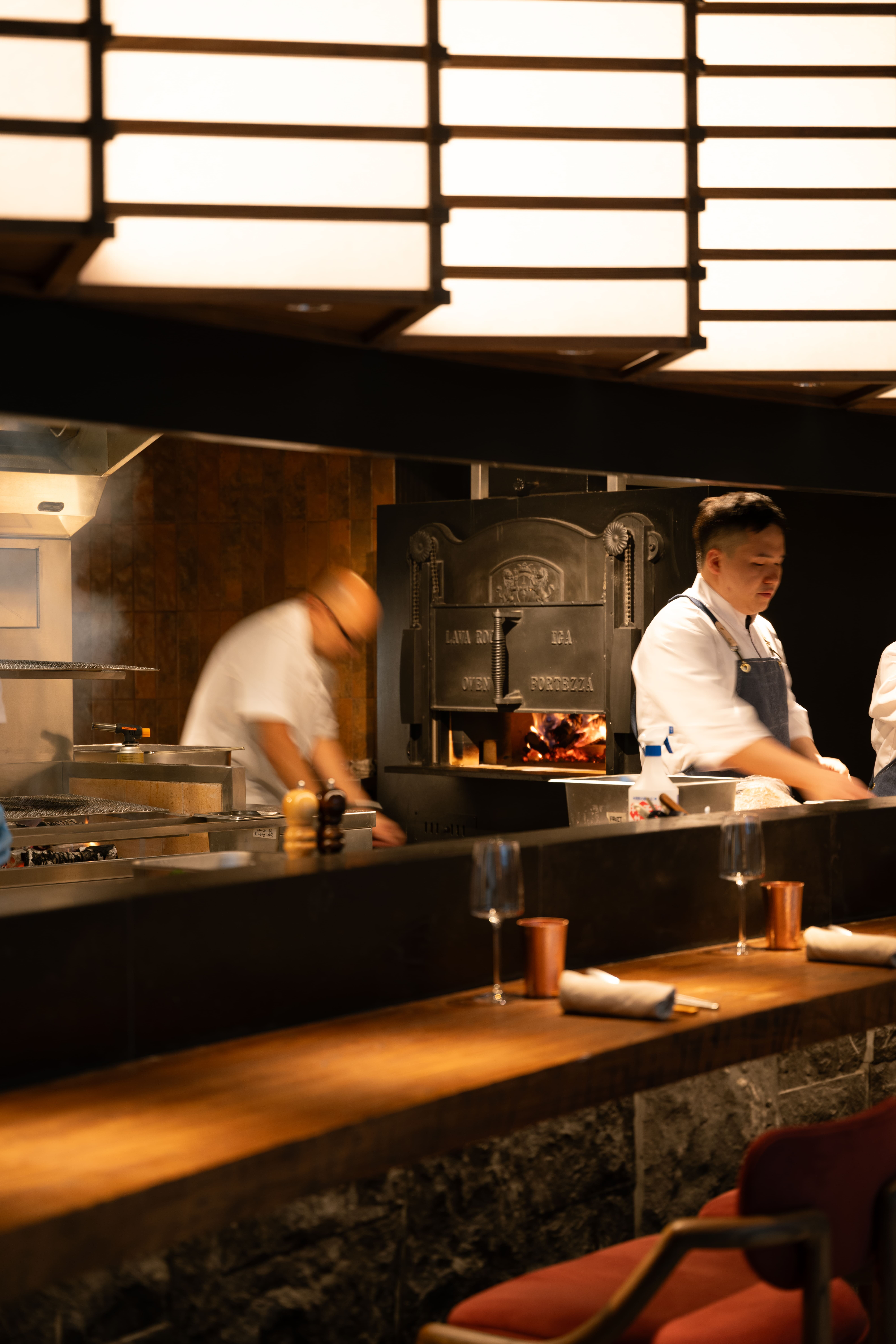 全球頂尖食府愛用原始炭火柴燒帶出獨門風格的料理,這股祟尚自然的烹飪風潮引進這間餐廳之中。餐廳斥資引入特製窯爐,採用荔枝木燃燒,經過約30 分鐘的燃燒之後,煉成高達500多度的焰紅柴火,再由廚師移至烤爐,用來烤製食物。專業木商預先將每塊荔枝木切割成指定尺寸(10.5 吋 x 2.5 吋),讓廚師精準控制燃燒的溫度與煙熏的份量,令牛肉表面形成焦脆,內裡保持鮮嫩多汁,賦予肉品獨特誘人的香氣。