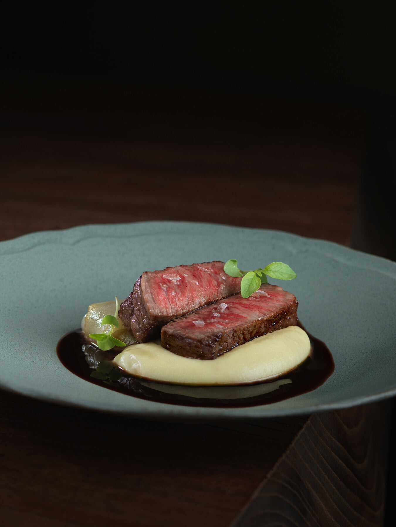 餐廳誠邀京都傳奇和牛懷石名店 「にくの匠 三芳(Niku no Takumi Miyoshi)」 的主理人伊藤力親自設計菜單,又找來擁有法餐經驗的京都女主廚松田亞弓坐鎮。店名GYU(牛)搜羅世界各地優質牛種不同部位,吃盡西冷、肉眼、牛柳、後臀肉蓋、外橫膈膜、牛舌,按照各部位的特性量身打造專屬烹調方法。