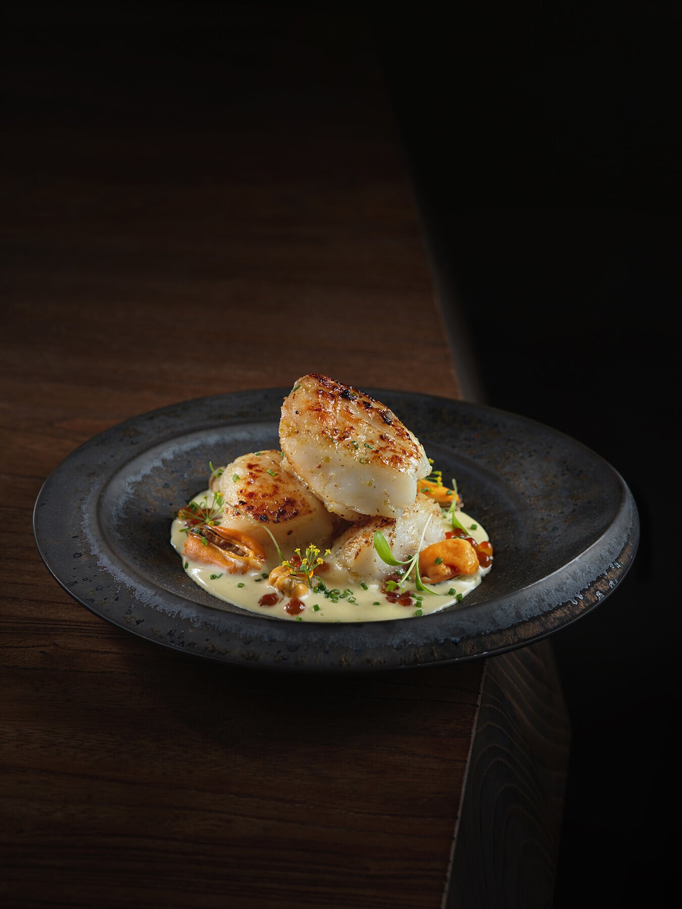 柴燒海鮮也一樣吸引,「龍蝦配南瓜馬鈴薯糰子」龍蝦鮮嫩伴以自家製意式糰子,配上法式海鮮龍蝦醬汁更顯濃郁;日法融合的「柴燒鮟鱇魚」,搭配以傳統禾稈草冷熏的三文魚子與法式空氣感白醬(Beurre Blanc Espuma),注入了新意。店內備有過百款紅白酒與清酒選擇,亦有多款特色調酒、以日本柚子、蜜柑,及其他時令水果調製的無酒精特飲,為豪邁奔放的煙火氣料理平衡解膩。