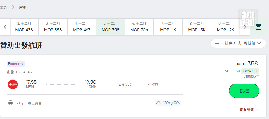AirAsia$0機票登場!澳門飛往曼谷 (廊曼)單程未連稅MOP 0元機票,另外加推AirAsia BIG SALE機票優惠,香港或澳門出發至泰國、馬來西亞、菲律賓、沖繩低至0.1折,單程未連稅票價由$2起。機票票價已包含1件7kg手提行李及1件隨身小包。