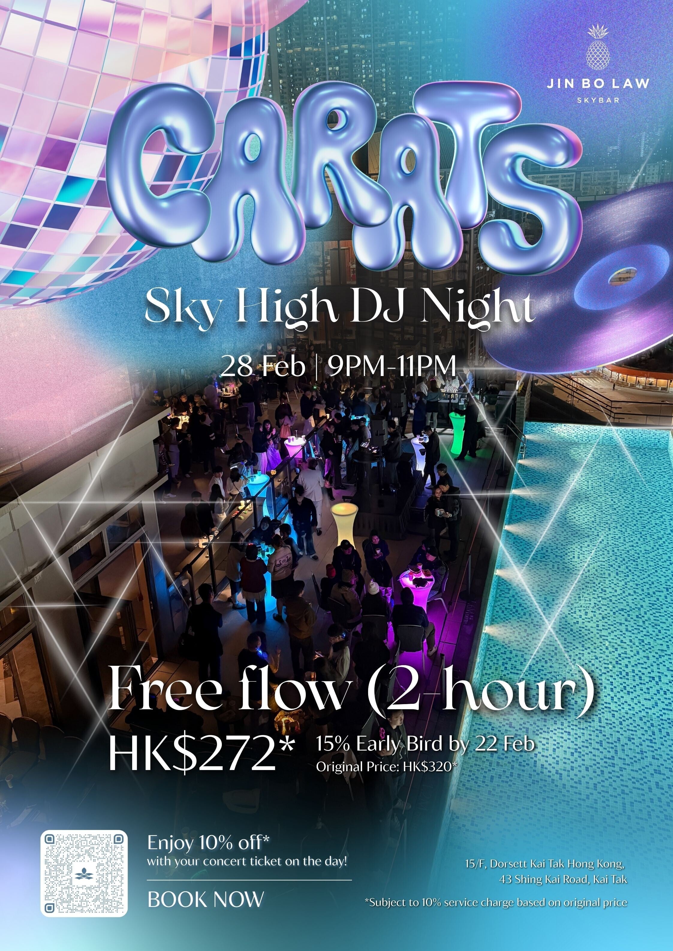配合 SEVENTEEN 來港舉行演唱會,Jin Bo Law Skybar 將於2月28日晚上9時至11時舉辦「CARATs Sky High DJ Night」。當晚由DJ Jasmine現場打碟,讓CARAT們在散場後繼續沉浸在演唱會的氣氛之中。