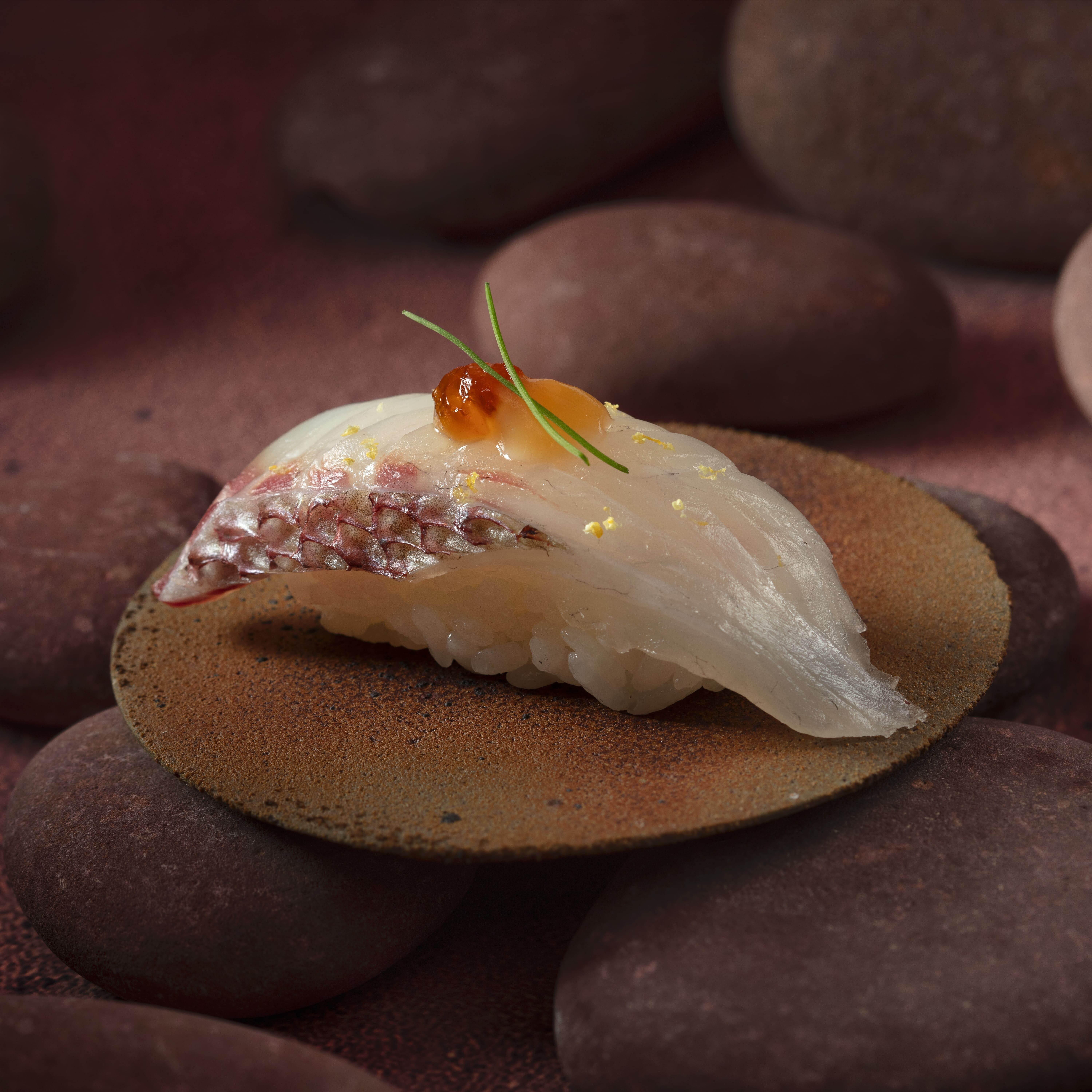 另一主打為「春之壽司六點盛」(嘗味價$223/客)。盛合包括六款壽司,由清爽至濃郁不同口味。當中包括櫻鯛配柚子味噌壽司,以春季當造櫻鯛配搭微酸醬汁及柚子味噌,平衡魚脂;墨魚配海膽泡沫壽司則以綿密海膽泡沫襯托爽脆墨魚,口感對比鮮明。赤貝分別製成壽司及裙邊卷,一次呈現兩種質感。其餘還有平目配炙燒裙邊壽司、深海紅蟹壽司及拖羅蓉三文魚籽壽司,整體組合層次分明。此盛合凡是千両及万両會籍會員可享8折優惠。