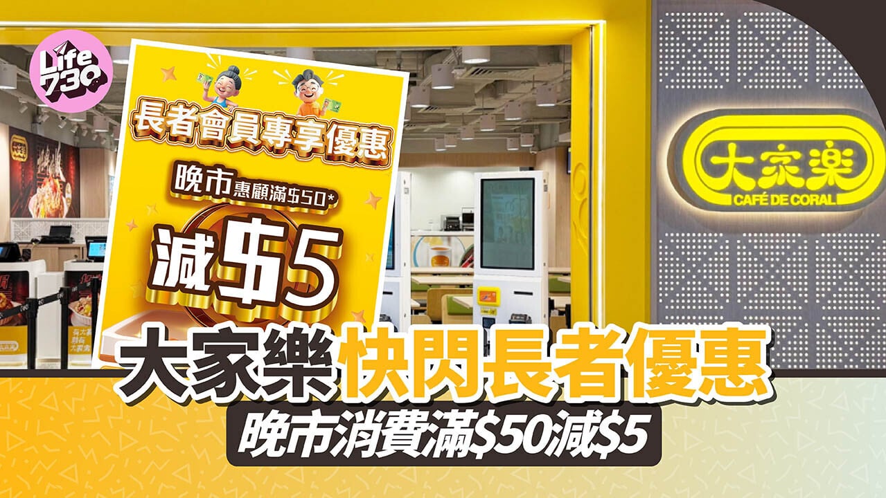 大家樂快閃長者優惠 晚市消費滿$50減$5