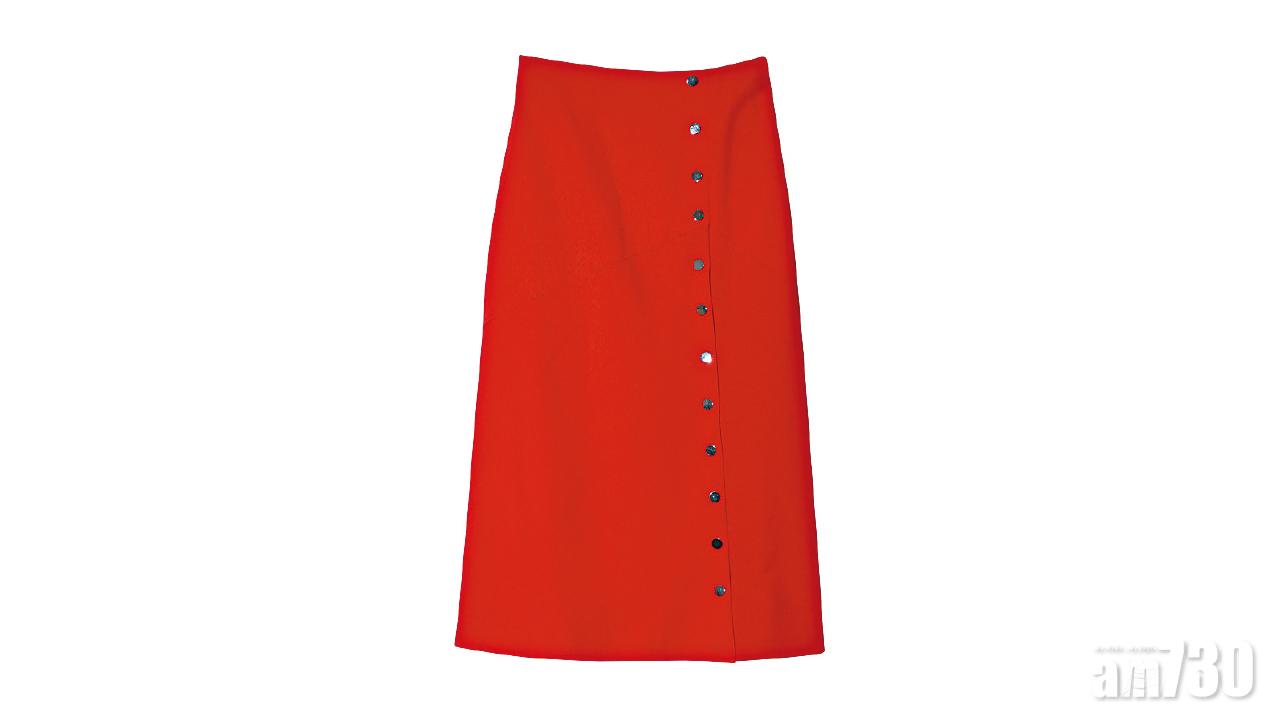 紅色A字裙令人看上來更修長纖瘦,極容易配襯。($2,380,Sportmax)