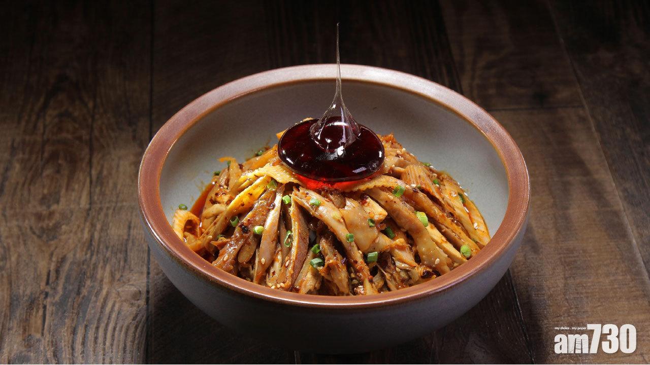 傳統的蓉城雞豆花,沿用了流傳過百年的食譜,雞胸肉剁茸挑筋,使之口感如豆花般幼滑,加上濃郁的雞湯,喝後十分暖胃。而玩味十足的敲糖棒棒雞,面層的糖球包有以成都二荊條、中椒、貴州貴頭、子彈頭及小米辣調配而成的紅油,輕輕一敲,紅油溢出,拌勻雞肉和脆糖,辣得有層次。