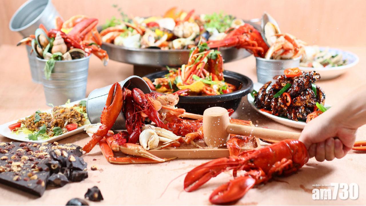 現在的自助餐少一啲話題性都不能突圍而出!港威酒店的Three on Canton,推出玩味十足的錘子海鮮美食體驗。每枱客人的桌上都有木錘,大家可以到自助餐桌拿取波士頓龍蝦、小龍蝦、海蝦、海螺、雪場蟹腳及麵包蟹等海鮮,再用木錘敲開外殼品嘗。甜品櫃亦有甜品師自製的朱古力,大家同樣可按喜好敲出朱古力塊。現場所見,不少細路樂在其中,玩個不停。此外,其他美食如黑胡椒炒蟹、椰汁咖喱龍蝦、蠔餅、法式龍蝦濃湯、鵝肝釀蟹蓋及西班牙海鮮飯等亦全晚不停供應,選擇豐富。