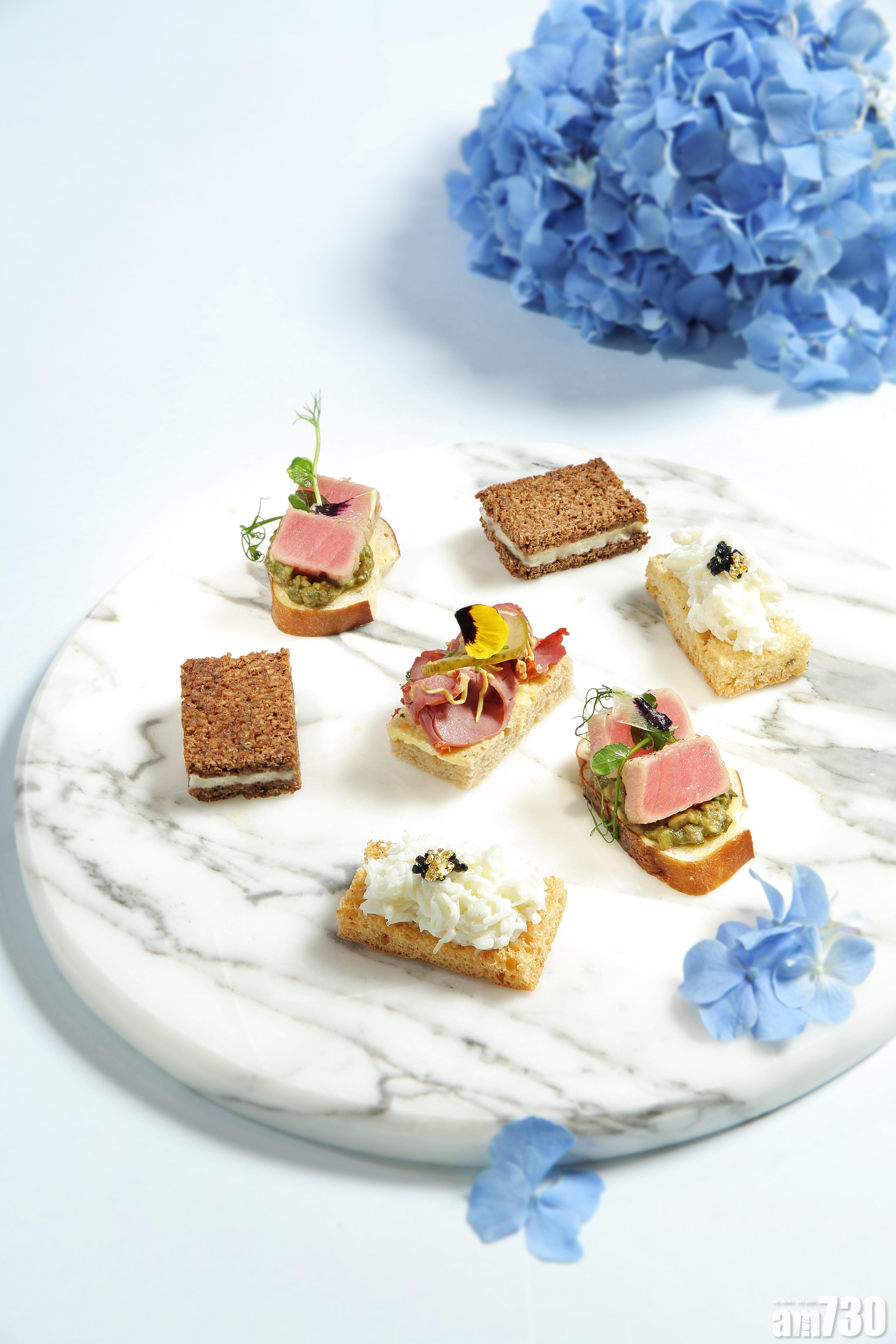 鹹點方面,有Ciabatta麵包配蛋白他他及黑醋魚子、漬牛肉農夫包、德國咖哩香腸卷及迷你德國酸菜及火腿炸麵球等,以傳統德國美食為主。