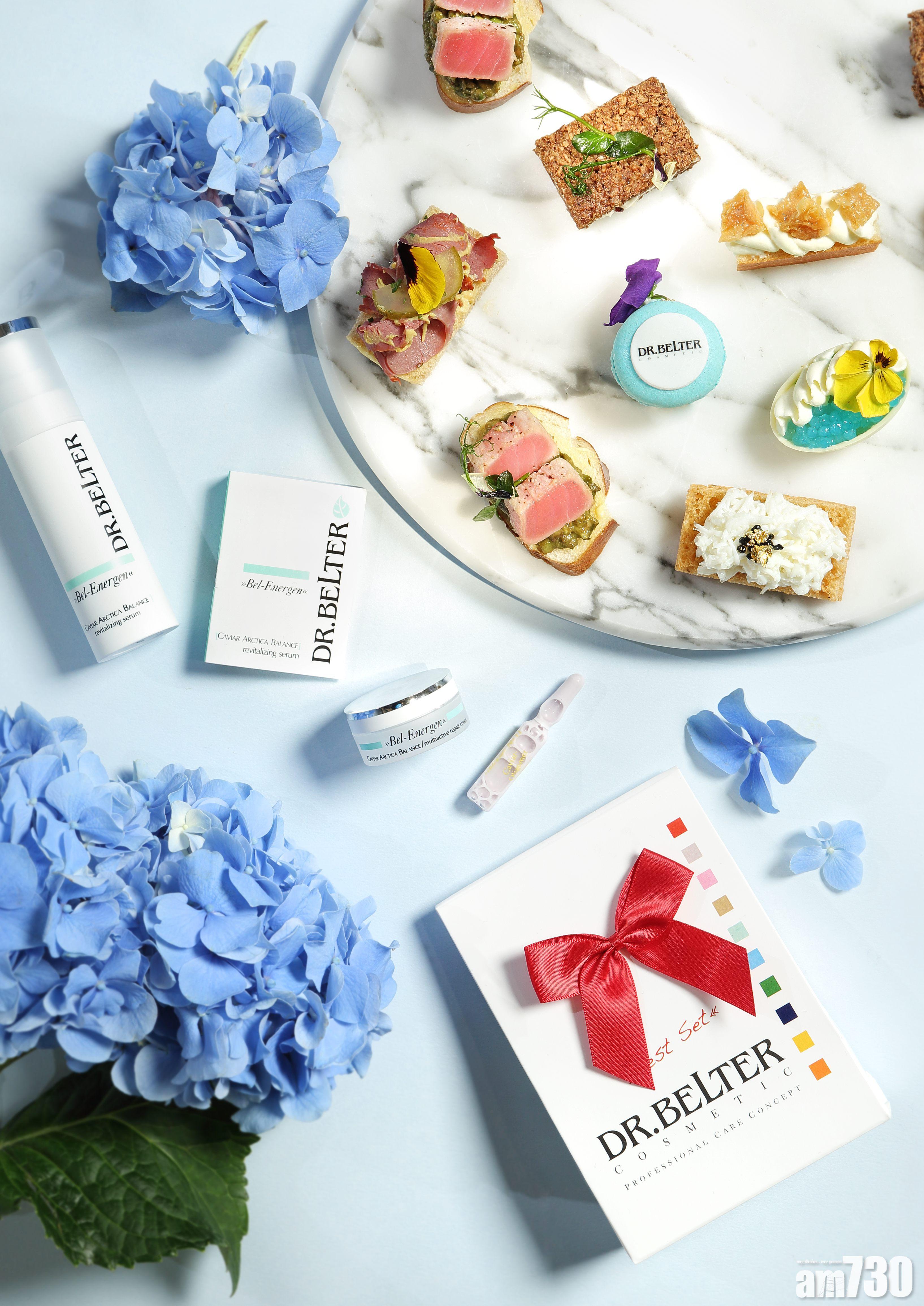 酒店糕餅主廚Billy Yuen以DR.BELTER 的皇牌抗衰老產品南極冰河魚子精華系列作創意靈感,以蛋白、魚子、牛油果入饌,創作全新甜品,伴以春日創作雞尾酒、魚子醬及香檳體驗,帶來奢華下午茶體驗。