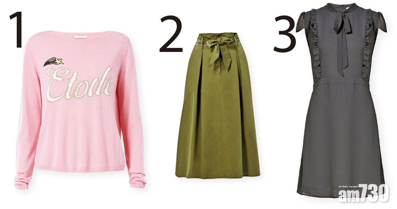 1.粉紅色字花圖案knit top $2,580(F) 2.軍綠色skirt $2,480(F) 3.黑色ruffles vest dress $2,480(F)