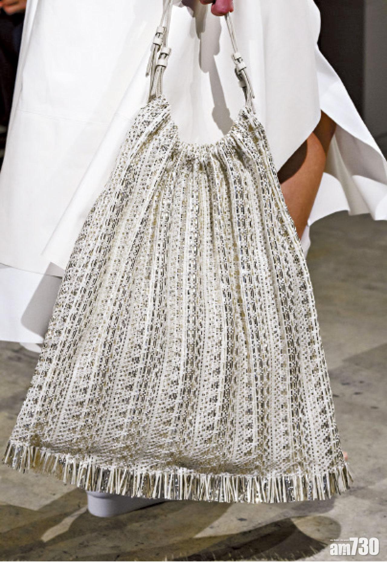 長裙亦在今個春夏回歸,以輕薄雪紡和針織面料打造層次感,各種不同款式、材質的長裙通過不規則剪裁,再用突破既定技術框架的針織工藝,注入流蘇及網格細節。