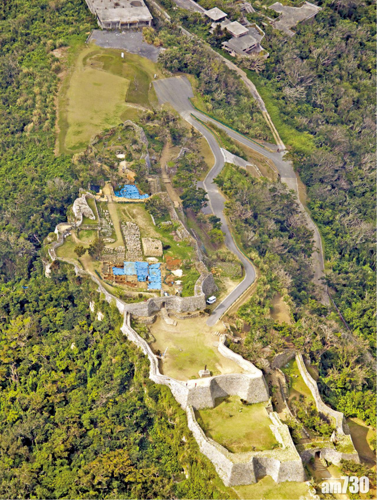 「勝連城跡」座落勝連半島陡峭的山坡上,以梯廓式設計成階梯型。