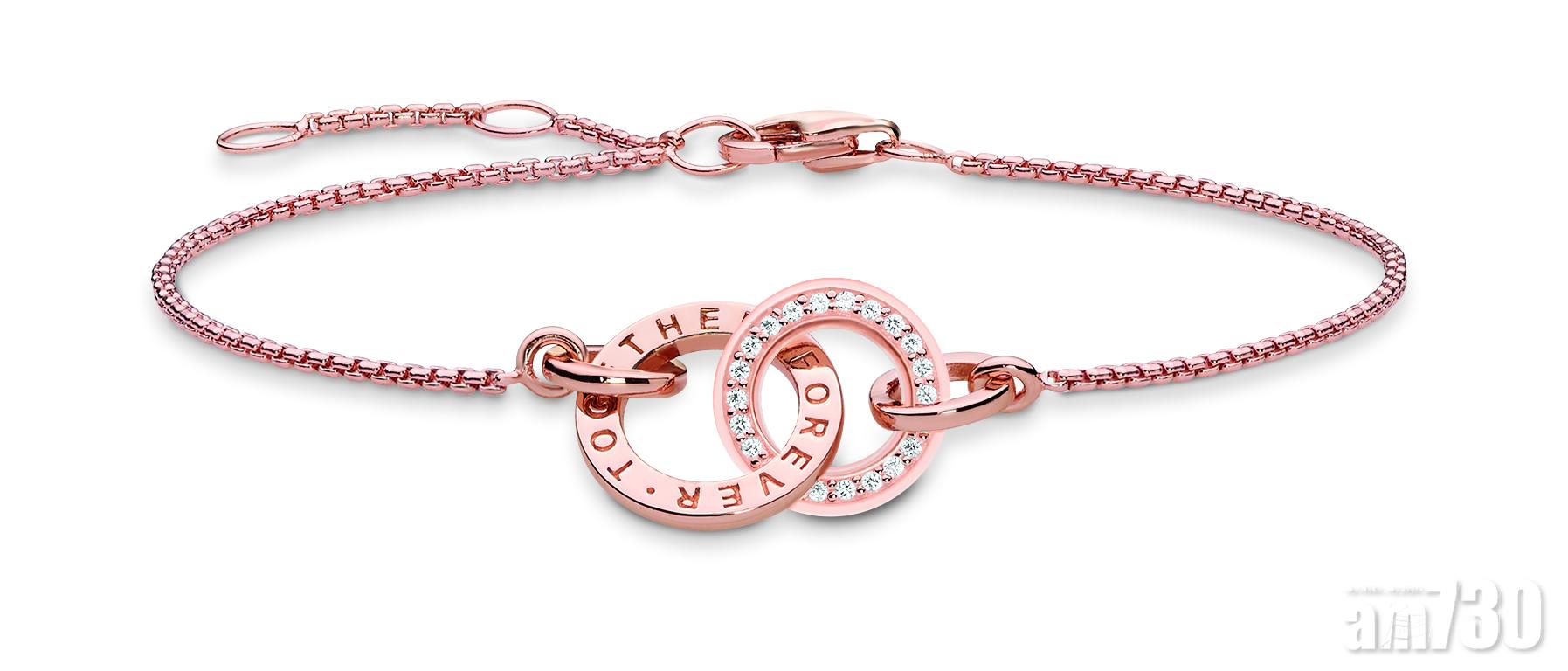 THOMAS SABO的Together系列,相信是品牌其中一個經典設計。今年聖誕更首次推出心形相扣設計,融合帶有白色氧化鋯石的心形,與刻有「Forever Together (永在一起)」字的圓圈互相緊扣,系列備有項鍊、手鍊及戒指,並有375玫瑰金鍍金及鑽石鑲嵌款式選擇。今季另一核心作品,是刻有「Forever Together」字句的戒指,綴上璀璨鑽石,承載著永恆真愛的祝願。