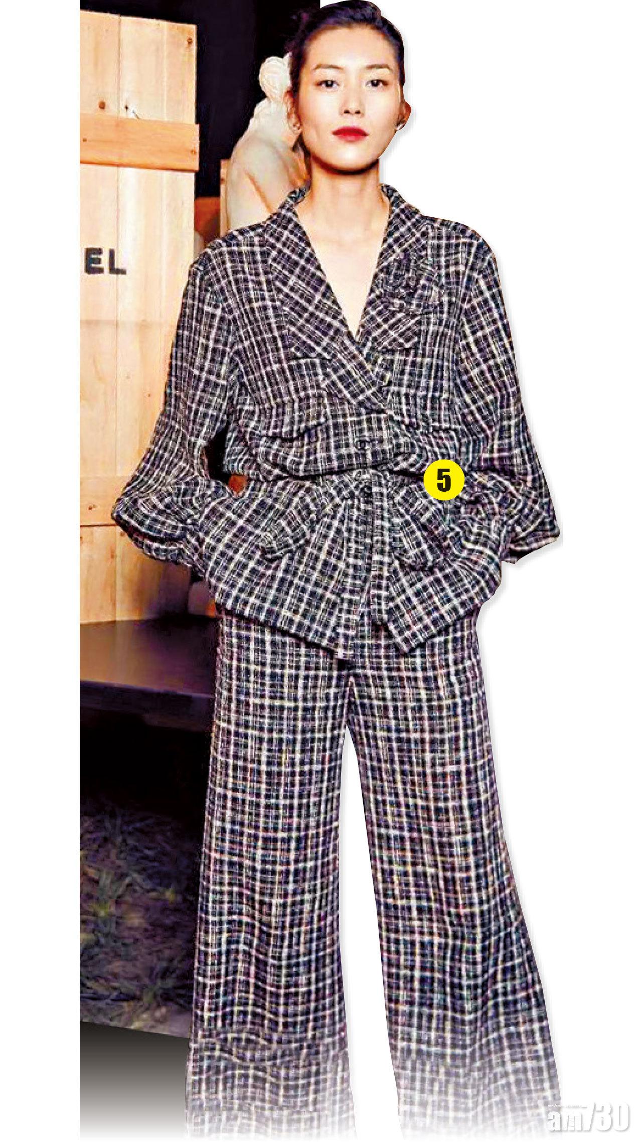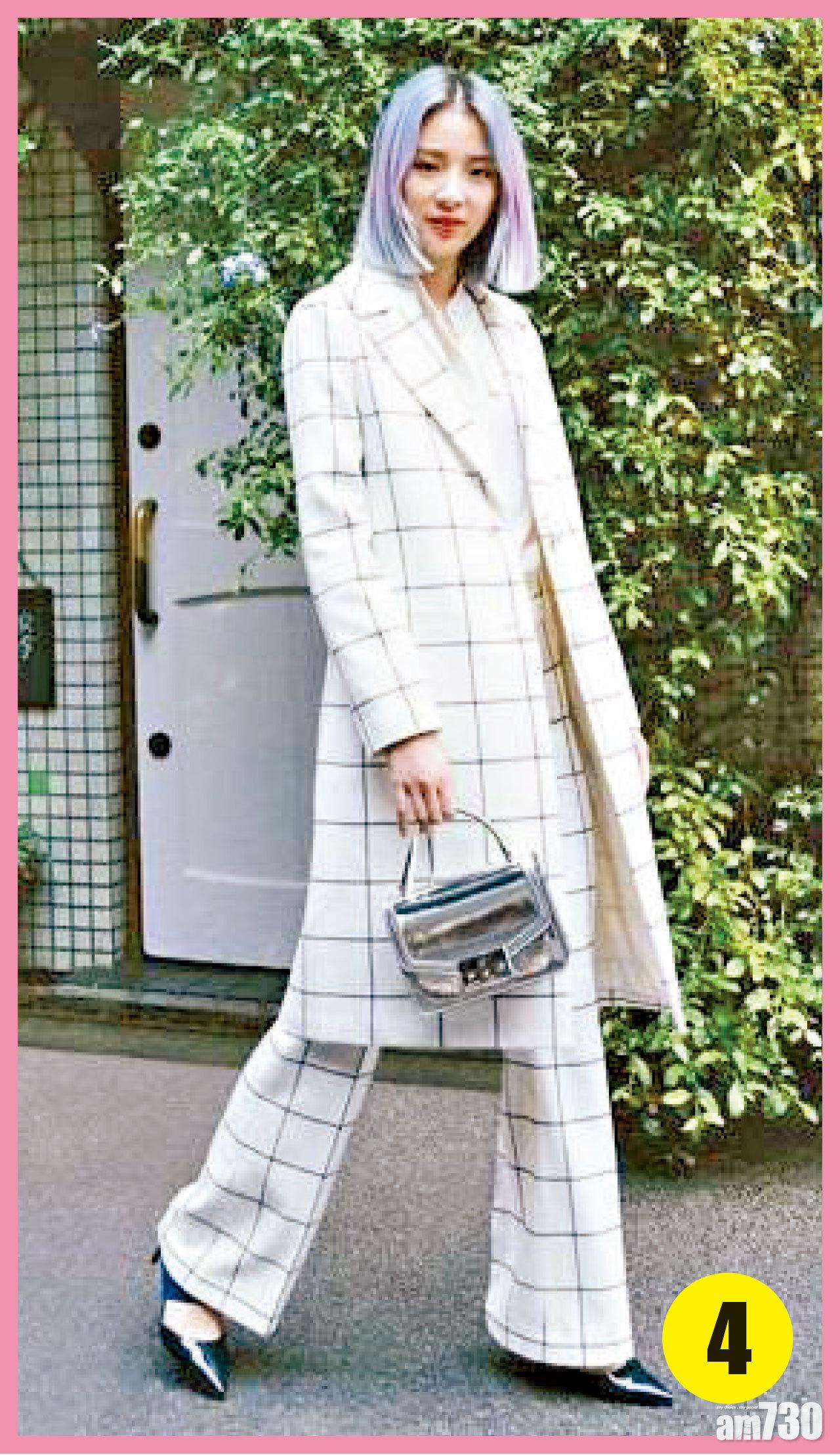 最近大熱的格仔套裝,揀選闊褲款式,走起路時瀟灑有型,看看韓國時尚名模Irene Kim(圖4)、超模劉雯(圖5)示範就知道!
