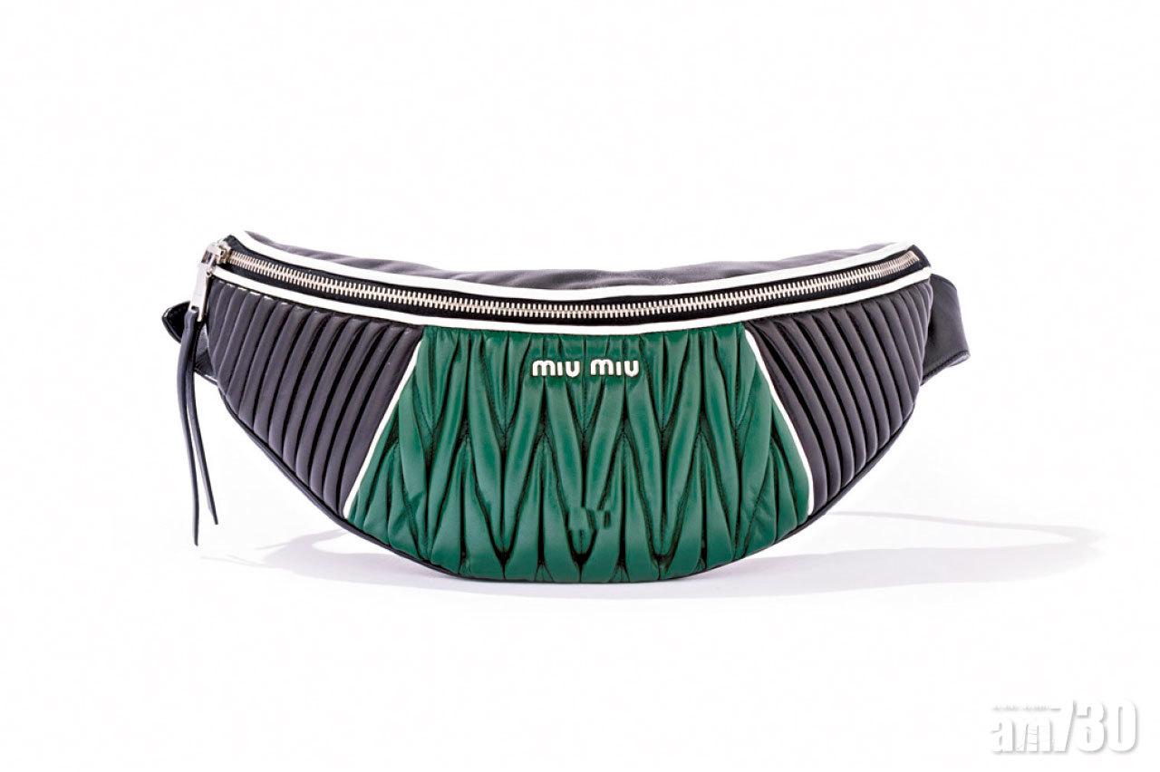 Miu Rider腰包$11,450,採用matelassé、光面皮革和動感色彩對比圖案拼布設計,十分搶眼。