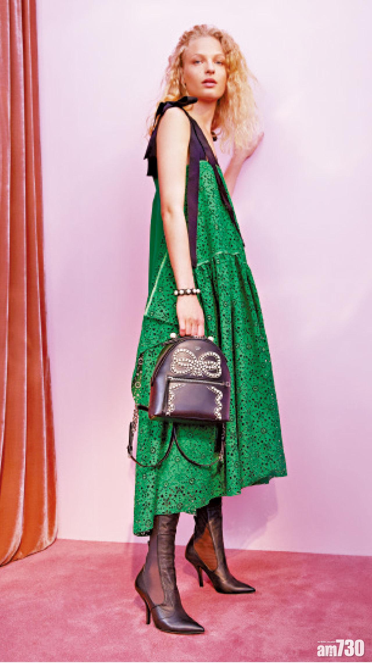 Fendi度假系列將品牌秉承的元素混合配搭;格紋圖案外套與束腳褲,以黃色線條點綴,充滿運動氣息。羅紋針織細節為鞋履注入型格感覺,並飾有蝴蝶結和珍珠,剛柔兼重。