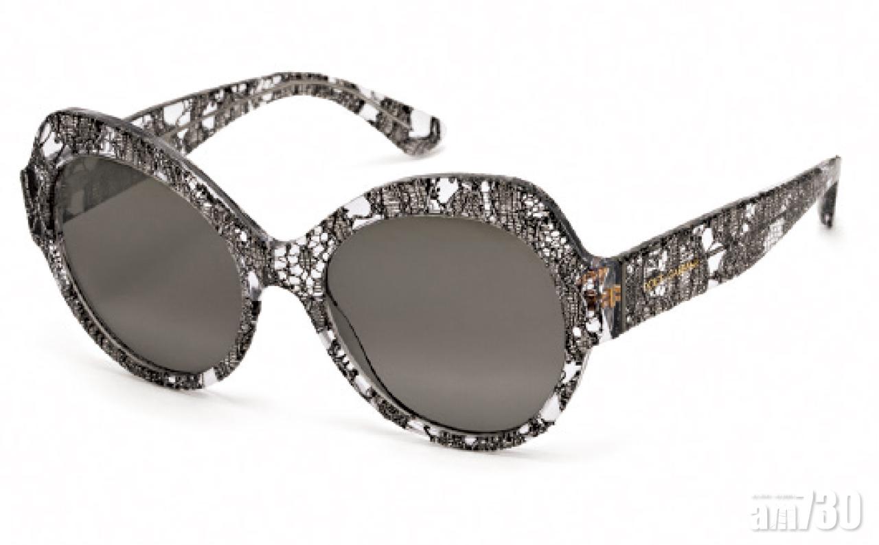 Salvatore Ferragamo Fiore閃石太陽眼鏡$7,860 設計靈感源於品牌標誌性的復古高跟鞋,鏡片以獨特鐳射技術精製的磨砂效果,同時以人手工藝鑲嵌了施華洛世奇水晶及單色閃石,閃耀光芒。