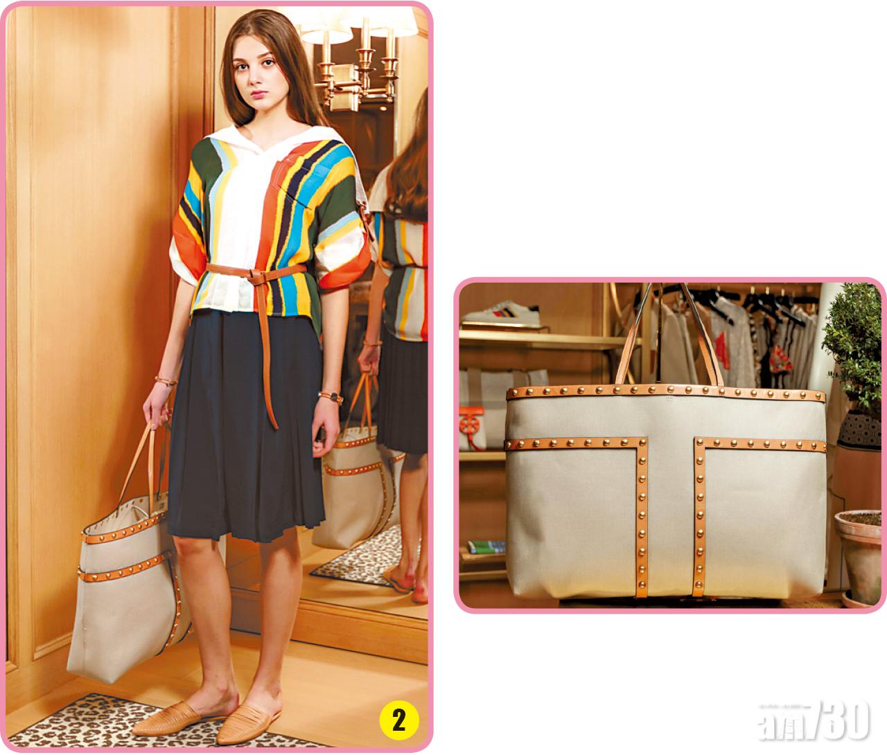 2.條子恤衫 $2,950;半截裙 $2,950;Block-t Stud  tote $5,900。