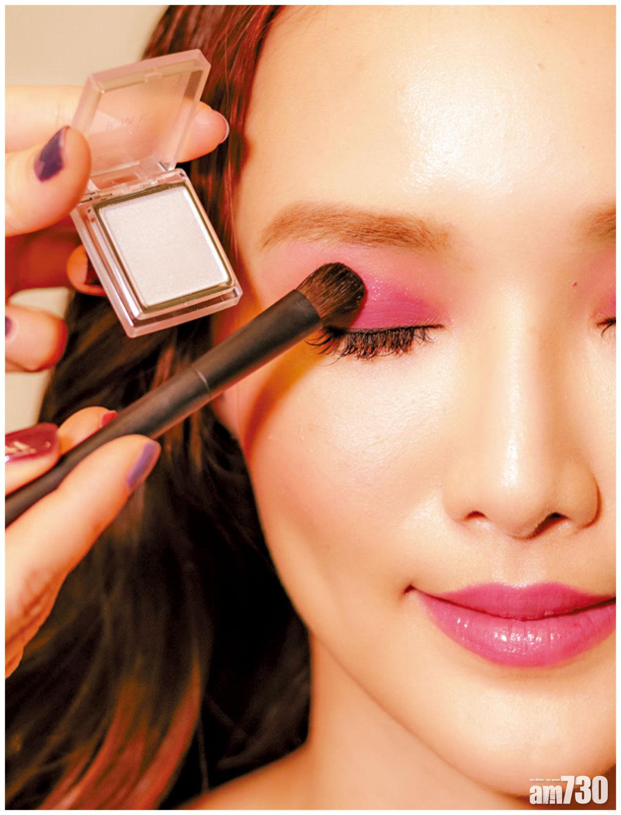 2. 之後在眼蓋位置掃上水亮啫喱,提升通透光澤感,同時帶來閃亮效果。