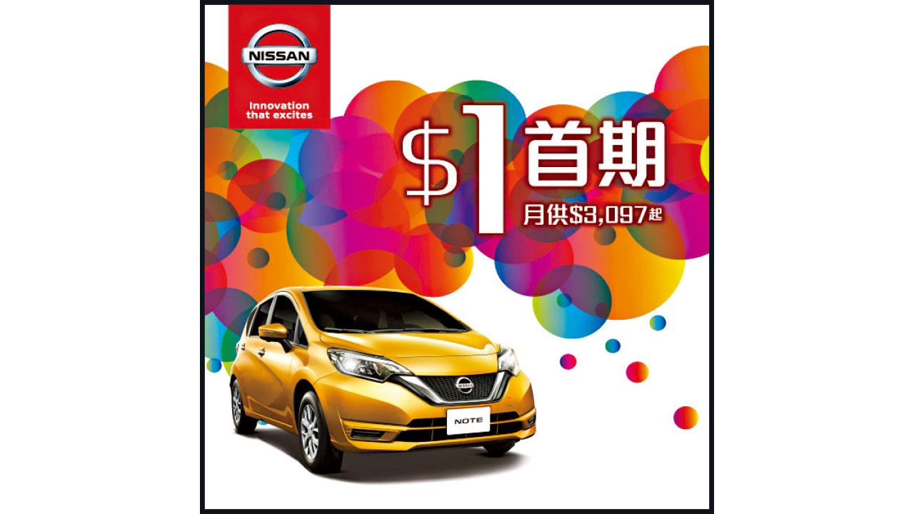 日產8月份限定,購買慳油揭背車王NOTE並成功批核上會,即可以$1首期出車,月供只需$3,097,兼送$1,000燃油禮券。動感揭背車NOTE車廂空間寬敞,車身繽紛顏色多達12種選擇,配合流線型的Squash line車身,充滿時尚動感。