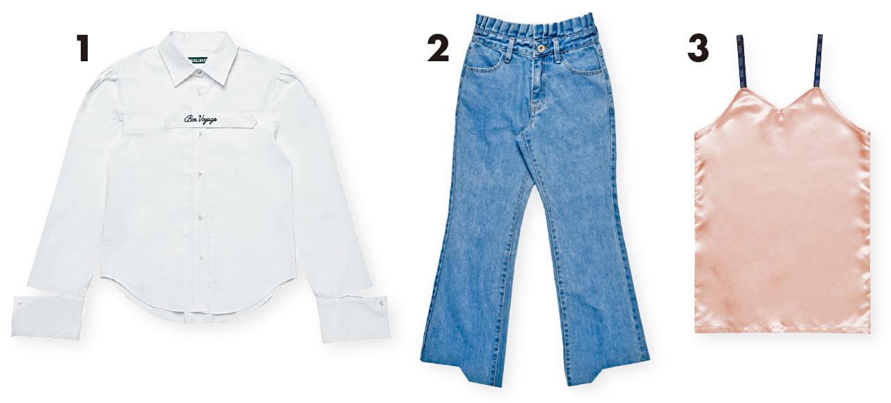 1.白色shirt by O!Oi $1,399(B) 2.藍色denim pants by O!Oi $1,099(B) 3.香檳色vest by O!Oi $899(B)