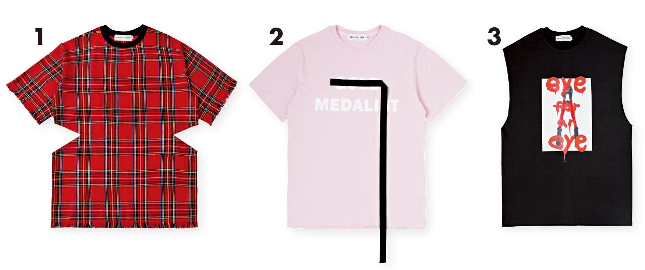 1.紅色格仔top by ROCKET X LUNCH $499(B) 2.粉紅色字花圖案tee by ROCKET X LUNCH $499(B) 3.黑色字花圖案vest by ROCKET X LUNCH $499(B)