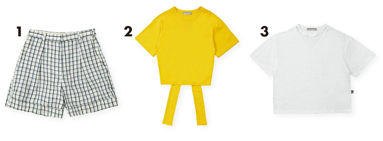 1.黑、藍、白格仔short pants by ANOTHER A $799(B) 2.黃色top by ANOTHER A $699(B) 3.白色top by ANOTHER A $499(B)