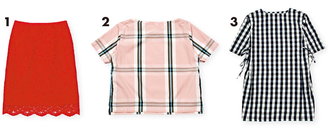 1.紅色喱士skirt $1,399(A) 2.粉紅色格仔圖案top $959(A) 3.黑白格仔圖案dress $1,499(A)