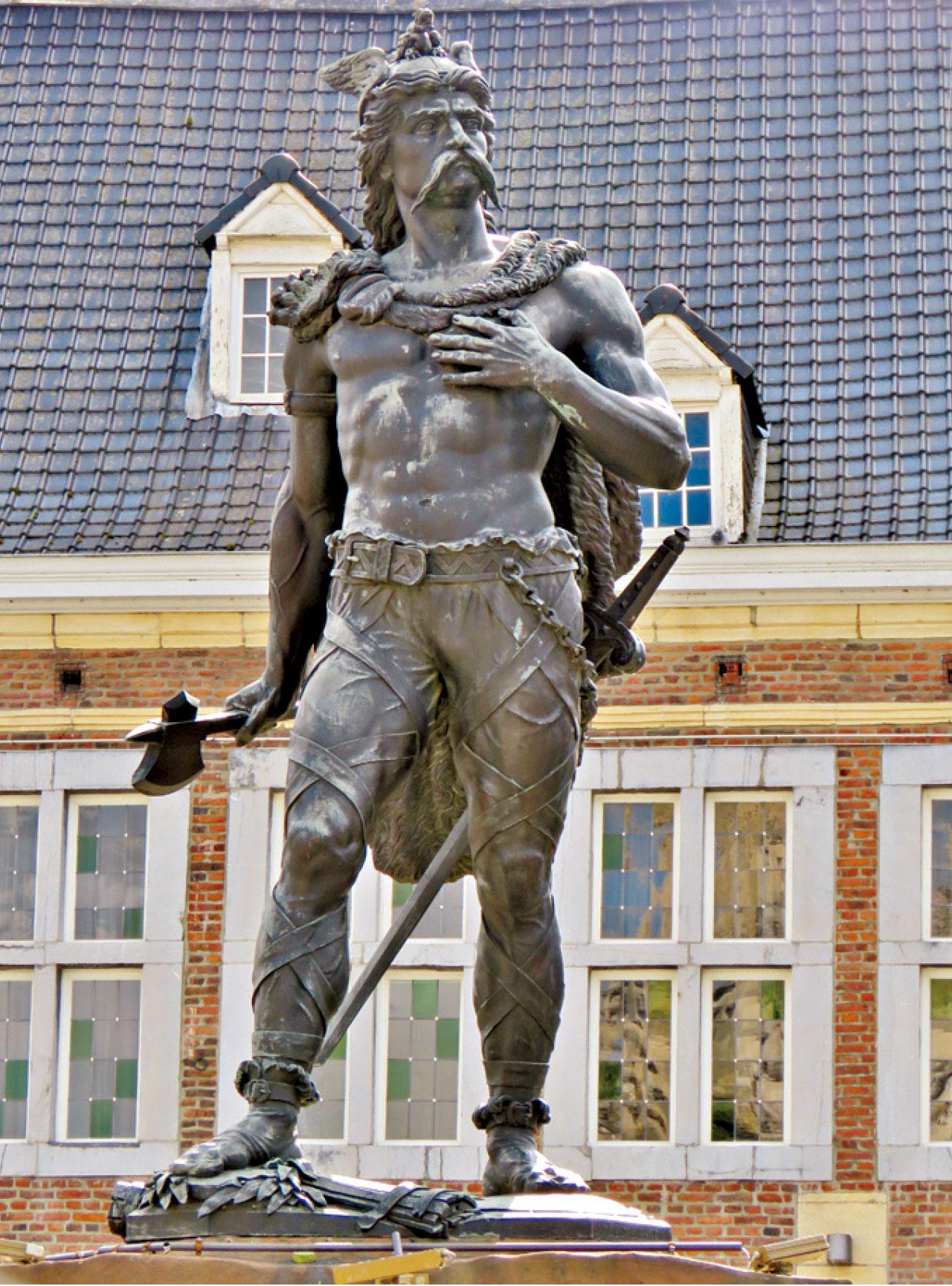 通赫倫的聖母大教堂和安比歐瑞克斯雕像。