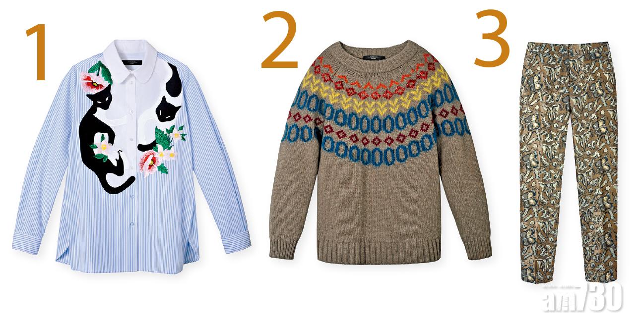 冬裝不一定黑沉沉,Weekend Max Mara今秋就嘗試運用大量圖案,來製作滿布色彩的新秋裝,設計師的色調運用,靈感來自繪畫的調色盤,像淺藍拼白色的恤衫上,繡上黑、白色花貓,效果清新優雅;同樣用上刺繡技巧的套裝長褲,以啞金色來減低亮度,卻增加華麗感覺;主打的焦點之作,絕對是紅色floral print dress,配搭卡其色絨大褸,雪紡長裙飄逸動人,是秋季微風下散步的靈氣服飾。