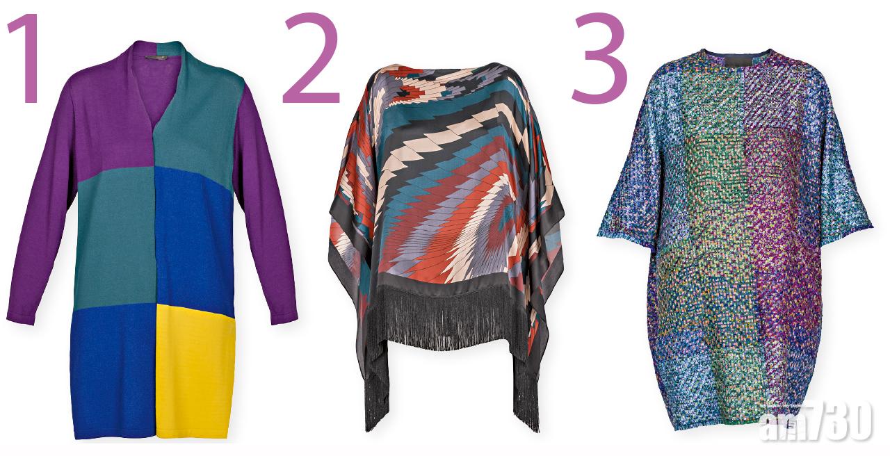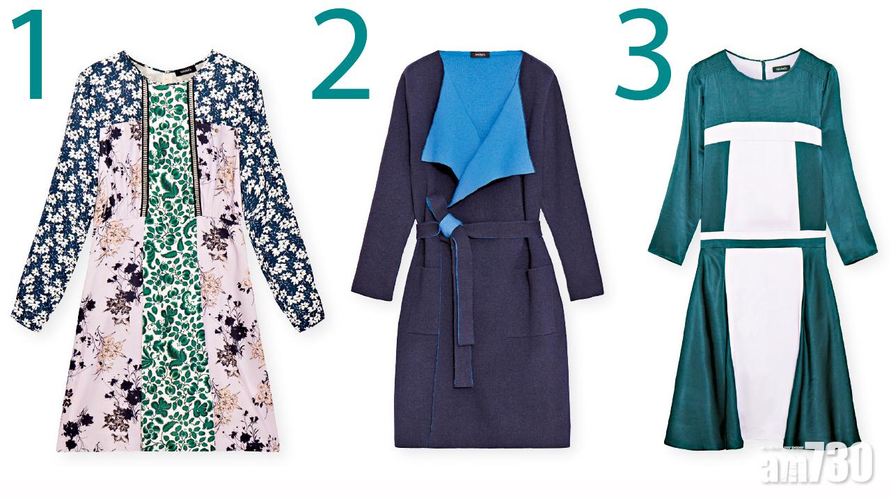 其他單品全都用上多種顏色,或圖案來作主設計,點綴出時尚色彩品味,像絨大褸反領以亮色做焦點;連身長裙則用不同色系布料,裁剪出具收身視覺效果的倒三角幾何圖案,加上動感隨性的girlish款式,營造剛柔並重的造型。
