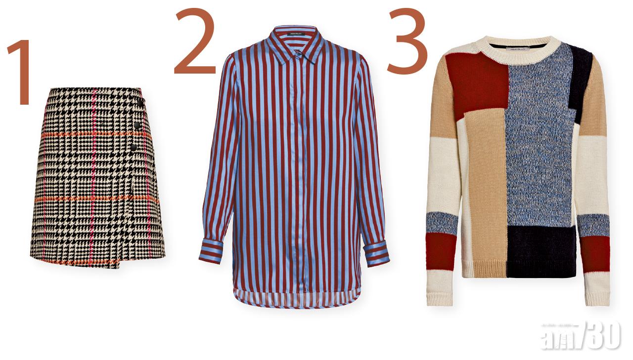 iBLUES 1.黑白橫間拼animal print knit top $2,580(A) 2.粉紅色絲綢開胸top $2,480(A) 3.黑色patchwork lace dress $4,380( A)