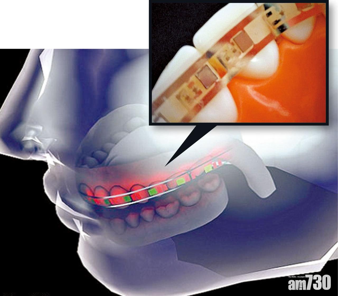 箍牙亦進入智能時代:3D打印半透明牙箍、每隻牙齒由兩盞內置鋰電池的LED燈照射,以「光療」增強骨骼生長及細胞能量,令牙齒加快移向整齊排列(光度可按不同需要逐隻調控),既縮短箍牙療程亦減少費用。研發的沙特國王科技大學Muhammad Hussain博士指,光療作用已獲肯定,這款聰明牙箍最需要的是安全供電,現採用的鋰電池實驗證實百分百安全;而袖珍LED的燈光肉眼看不到,沒有「棚牙閃閃亮」之弊。但報告未提及究竟有多省時慳錢。(互聯網)