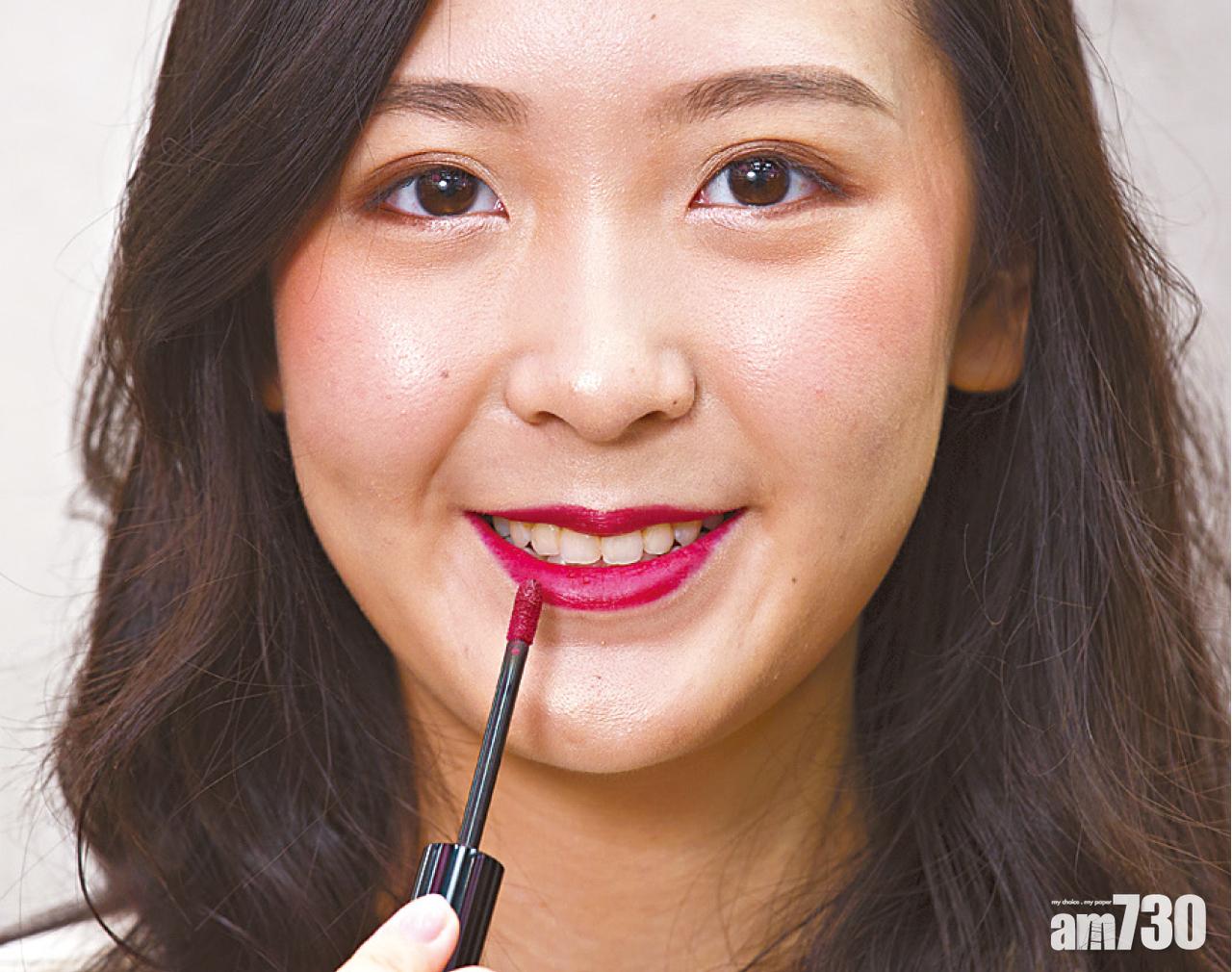 Step 3 : 最後塗上紫紅色的絲絨霧感唇釉,展現極富女人味的啞緻質感唇妝。