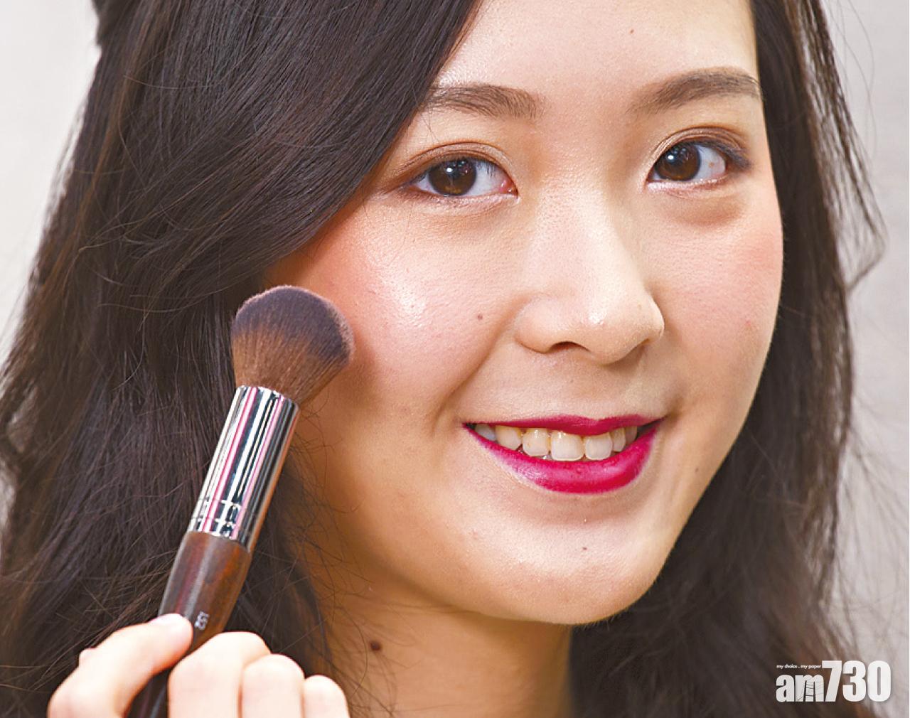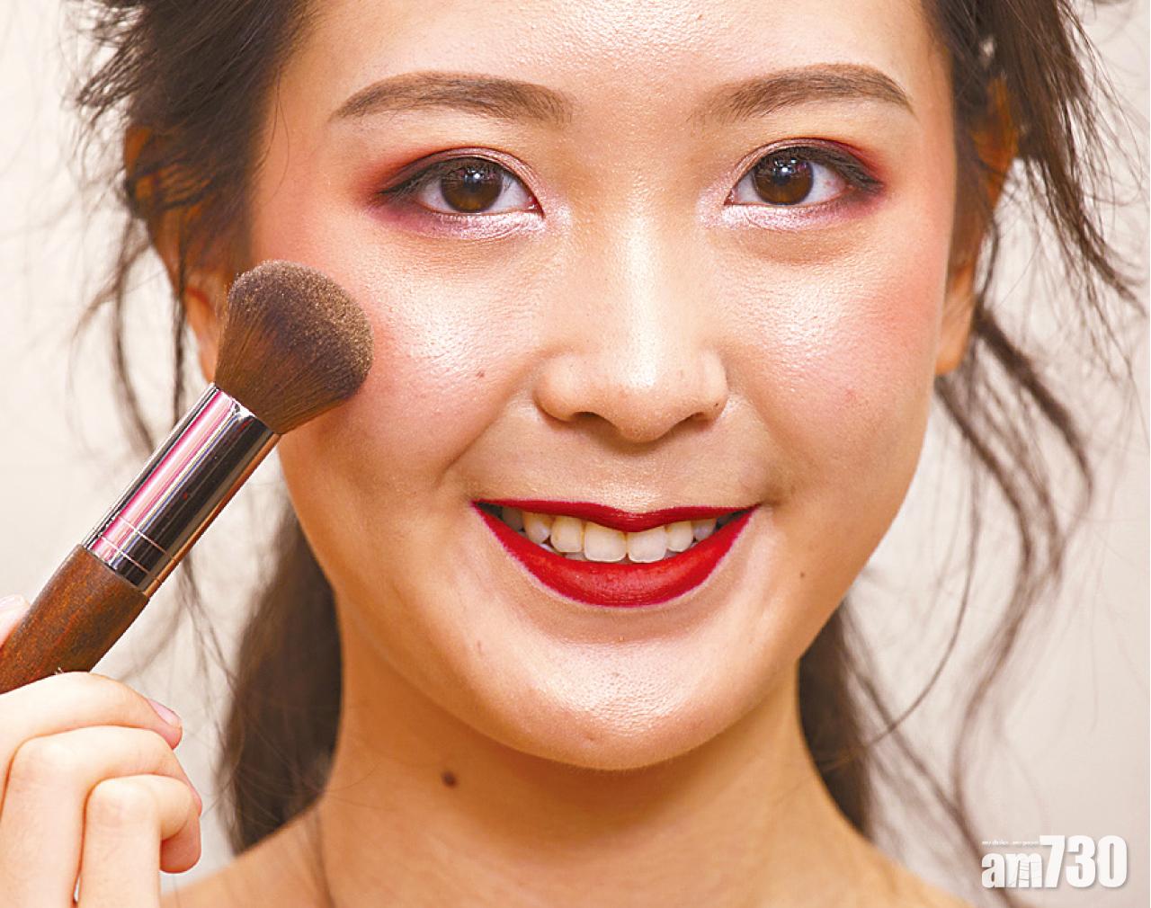 Step 2 : 以多用途炫彩閃粉,提升妝容閃爍效果,可取適量用於眼、面和唇等部位,為妝容提亮;掃上自然的胭脂,加強面容好氣息;