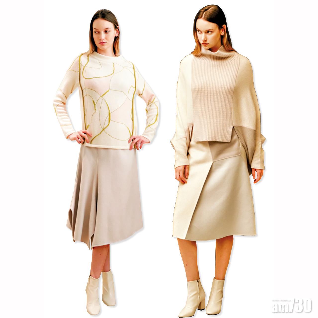 今個秋冬美國羊絨服裝品牌TSE,在設計方面可謂落足心機,一系列服飾均用上奢華輕盈羊駝、絨球谷波浮雕圖案及多種織花效果等,除了雙面針織設計、提花紋理之外,還有不對稱衣袖、拼色和可拆式衣領等別具特色的設計,讓女性充分展現自我風格。