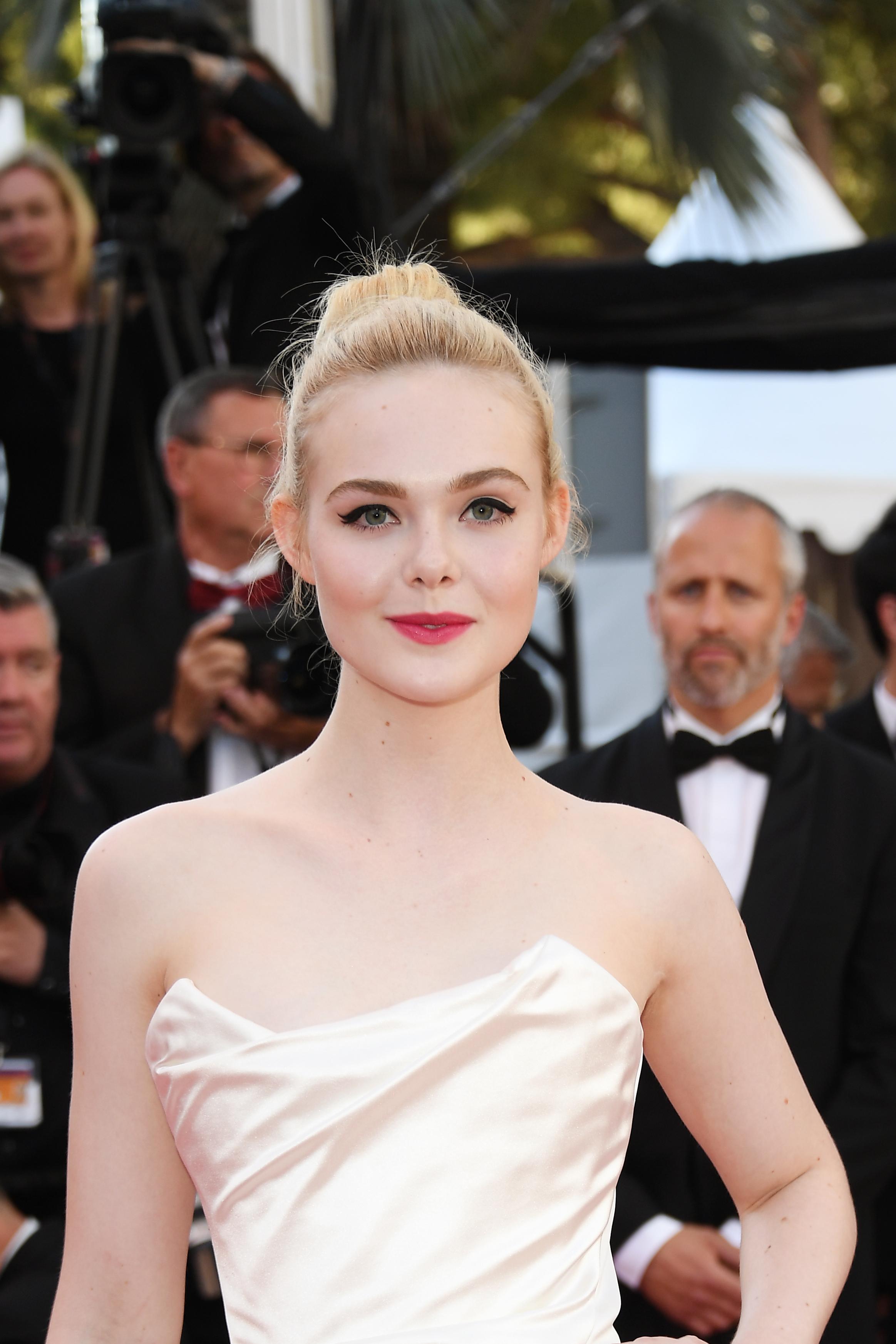 Elle Fanning早前穿上一襲手繪圖案的公主裙,出席法國康城影展,不過她的娃娃妝容一樣不容忽視,原來她最近成為L'Oreal Paris代言人,化妝師以粗線條的黑色眼線,簡單配搭啞緻唇妝,令膚色白皙的她散發空靈美感。