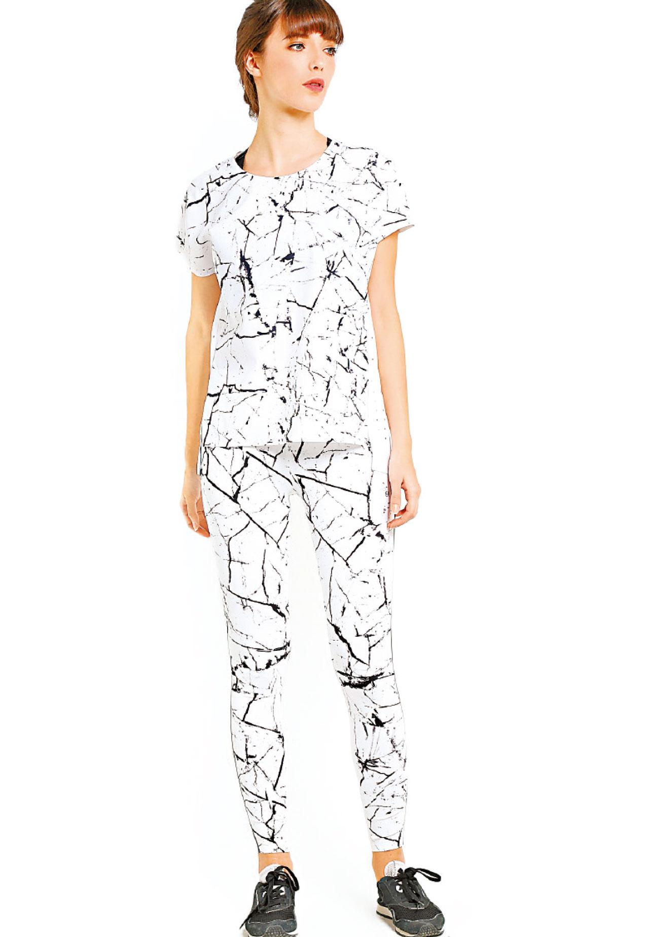 白底黑色不規則雲石圖案上衣配同款長褲,型酷有個性,充滿都會魅力。($790,Calvin Klein by Zalora)