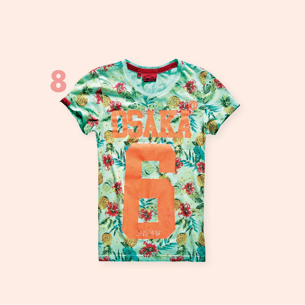 1.懷舊卡通角色Woody Woodpecker 鬼馬啄木鳥帶來集體回憶,重拾童真。(未定價,House of Holland)  2.Tee一樣可以細緻花巧,如這件黑色配金色波點及花花圖案的,配長裙子甚至可成為coctail party look!($3,000,K-Stylelab)  3.大小不同的字母如剛撕下來的字母卡,放在tee上帶出一份中性的味道,得意別緻。($400,K-Stylelab)  4.任天堂遊戲是不少人的童年回憶,找來當中遊戲主題圖案設計tee,意想不到的清新氣質。($99,UT Grand Prix 2017 By Uniqlo)  5.任天堂的孖寶兄弟是電子遊戲中的經典人物,以另類筆觸將其演繹在tee恤之上,既得體又帶出幾分童真。($99,UT Grand Prix 2017 By Uniqlo)  6.One Piece與此品牌聯乘tee已與大家闊別4年,今年再度現身,雖然只有男裝系列,不妨和男伴各選一件做情侶裝,不一樣的浪漫。($99,ONE PIECE UT by Uniqlo)  7.低調的深粉紅色,配海賊王角色印花,男裝的cutting帶來boyish的感覺。($99,ONE PIECE UT by Uniqlo)  8.Tropical flower及菠蘿圖案配球衣式文字印花,充滿夏日動感,配熱褲短褲就是沙灘裝。($450,Superdry)  9.無縫網面運動tee,穿著時份外舒適,既可是運動專用的上衣,亦是夏日外出的透心涼之選。($600,adidas by Stella McCartney)