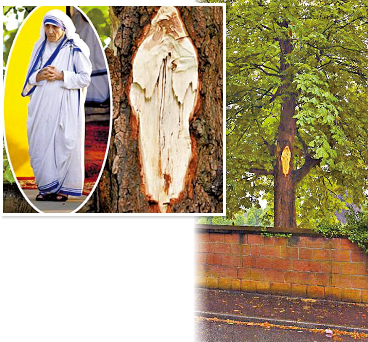 返回 生活 出版:2017-Jul-24 06:00 更新:2017-Jul-24 06:00 斷枝現聖女 分享: 大自然偶出現的人形圖案,免不了引發諸多聖人聯想,耶穌聖母已多番「現身」,德蘭修女亦有幸登場。英國利物浦一教堂面對的大樹日前折枝,樹幹露出的呎餘高斷木痕跡,遠觀近看皆激似……獲封聖的德蘭修女。(互聯網) ADVERTISEMENT激送Monchhichi維港海陸嘉年華入場券!
