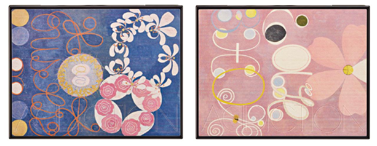 系列更加入全新眼影製法Floral Mosaic,將多種色調壓縮在同一眼影內,細巧計算色調及配色的平衡,能避免顏色混合後變得混濁。眼影色系也突顯Ayako的獨特Pastel Color粉彩色調系列,展現盎然的和諧美。品牌更選用Hilma af Klint的其中2幅畫作,製作成限量的化妝盒,由即日起至2月28日,購買任何產品滿$700(需包括2款眼影),即可免費獲贈。