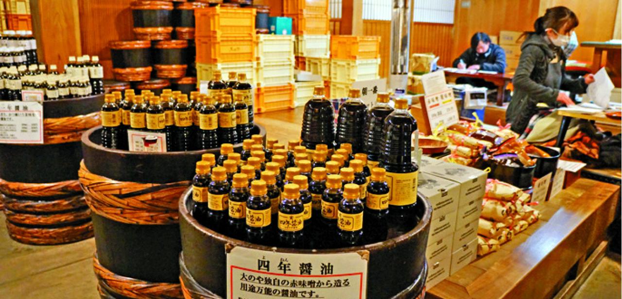 店內還有豉油等醬料出售,放滿一室宅配運往日本各地的貨品紙箱;門簾掛上的是武田,在織田、豐臣、德川時代,要自稱此地是武田家,著實要點勇氣和傲氣,或許就是這份堅持才釀出頂級味噌。