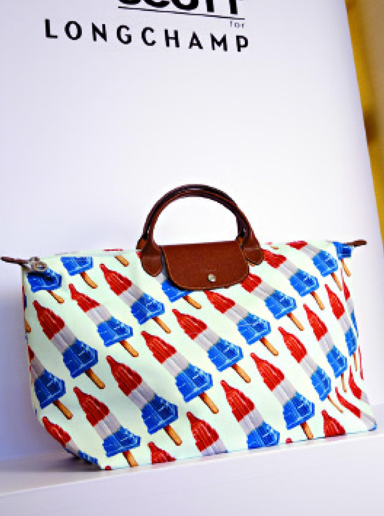每季都與LONGCHAMP合推經典大袋的設計師JEREMY SCOTT,今年以帝國大廈做構圖,鬼馬地以搶眼的紅白藍三色雪條來演繹,夏日望到它已有涼浸浸的感覺。Empire State Popsicle bag,$2,200 (45 x 35 x 23cm)