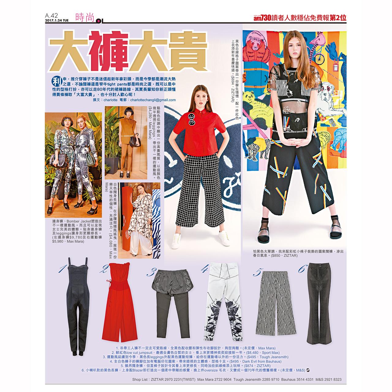 利申,推介穿褲子不是迷信趁新年拿彩頭,而是今季都是潮流大熱之選,不論闊褲還是窄牛tight pants都是時尚之選,既可以是中性的型格打扮,亦可以走80年代的裙褲路線,其實長輩知你新正頭懂得買條褲取「大富大貴」,也十分討人歡心呢!