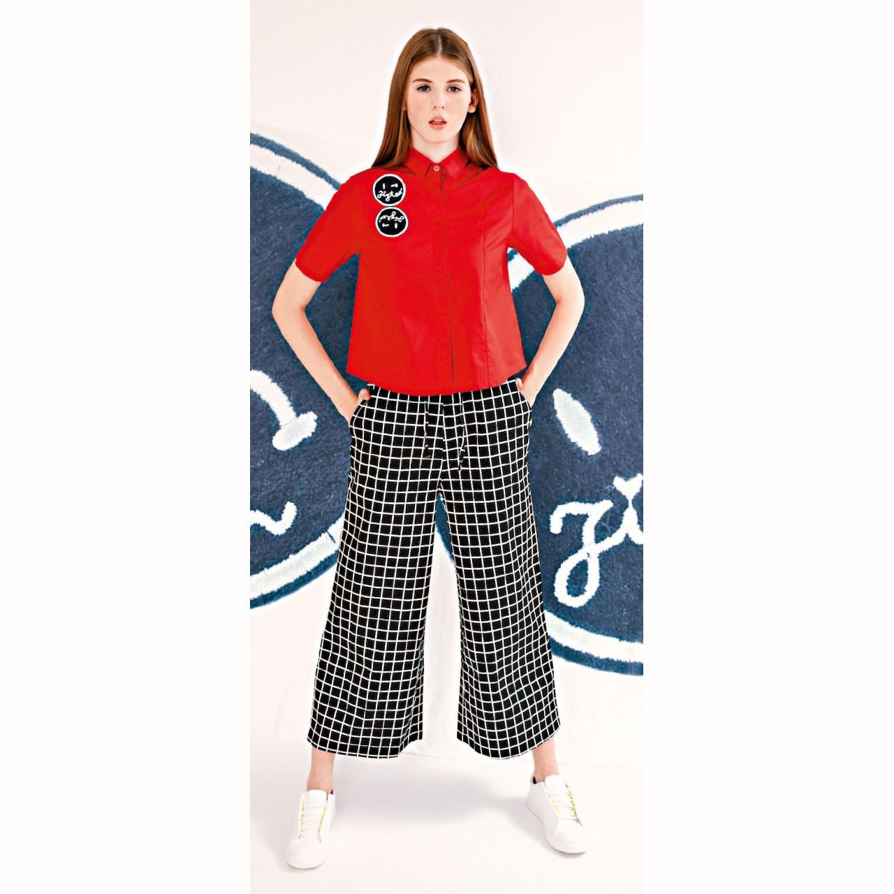 黑色白線格子圖案帶出一份學生情懷,配一件紅色上衣添新年喜慶味道。($694,ZIZTAR)