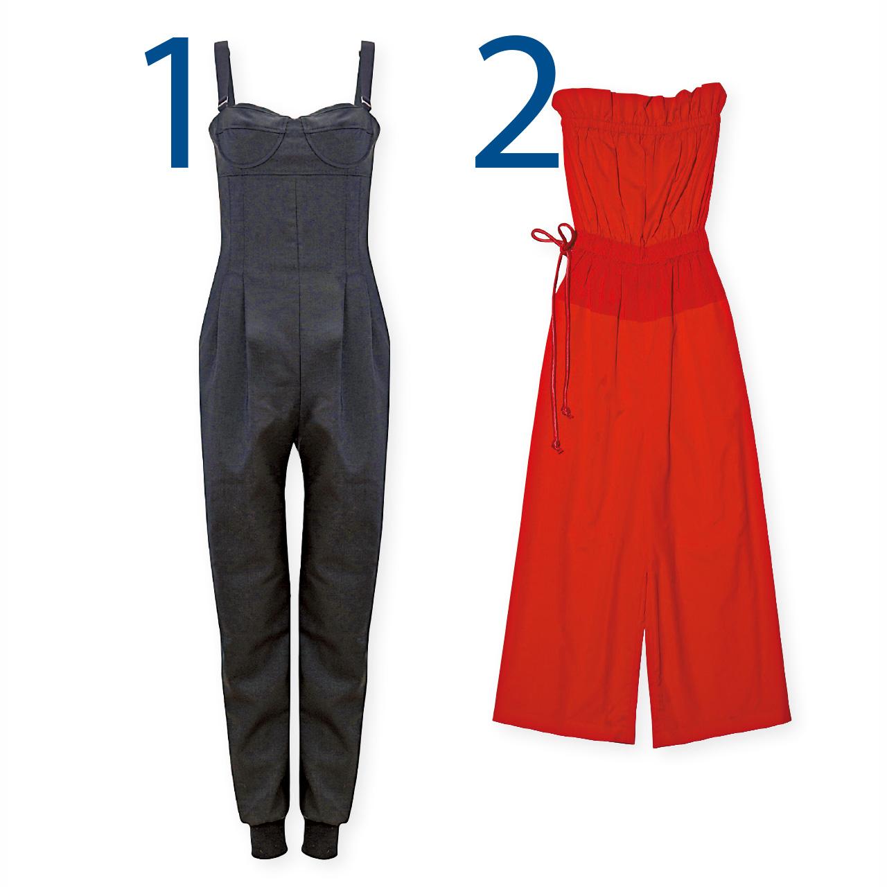 1. 吊帶工人褲不一定走可愛路線,全黑色配收腰和彈性布收腳設計,夠型夠酷。(未定價,Max Mara) 2. 鮮紅色low cut jumpsuit,最適合膚色白皙的女士,看上來更精神奕奕迎接新一年。($8,480,Sport Max)