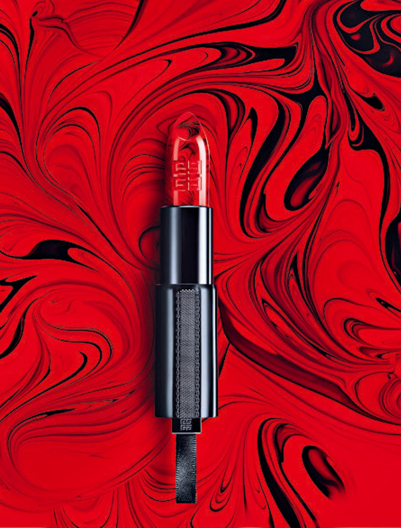 雲石紋近年主導時尚界,Givenchy最近也推出25色的Rouge Interdit系列,除了鮮明豔麗顏色,更首度加入黑玫瑰精油於唇部彩妝產品,增加滋潤效果。其中第25號Rouge Révé lateur紅黑雲石限量版,結合13號的Rouge Interdit和黑玫瑰色調,糅合成大理石紋。黑玫瑰配方會隨雙唇PH值變化,令每支唇膏都成為獨一無二的色調。