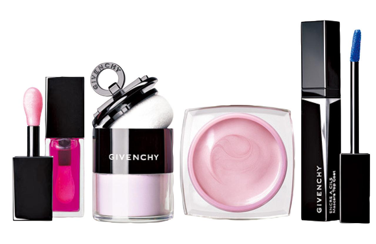 (左起)魅彩水潤護唇油 $260/6.5ml 星鑽魅彩蜜粉輕便裝$310/8.5g 光影啫喱No.01 $360/30g 彩藍睫毛膏$240/6ml