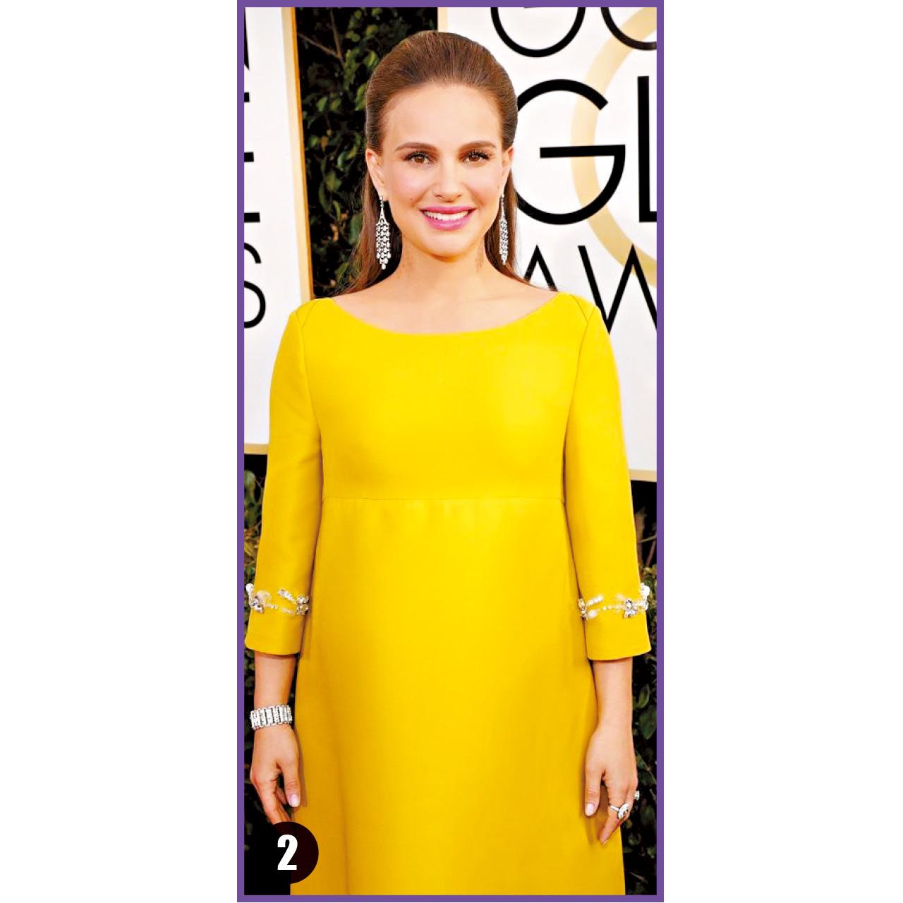 在上月的金球獎紅氈上,包括麗絲蕙絲潘(Reese Witherspoon,圖1)、妮坦莉寶雯(Natalie Portman,圖2)等女星都選擇黃色晚裝現身紅地氈。無論是Atelier Versace的復古高衩裙,抑或是Prada的古典七分袖晚裝,都以深淺不同的黃色呈現出優雅亮眼的特質。