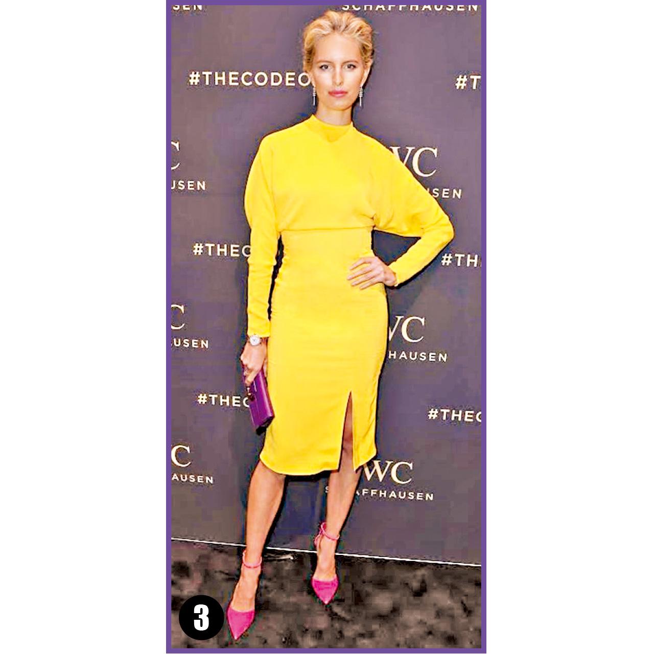 捷克超模Karolina Kurkova(圖3)日前出席瑞士日內瓦SIHH鐘錶展時,著住Ferragamo 2017春夏的黃色裙,設計獨特的袖子很有造型感,配桃紅色綁帶尖頭高跟鞋,展現撞色時尚魅力。