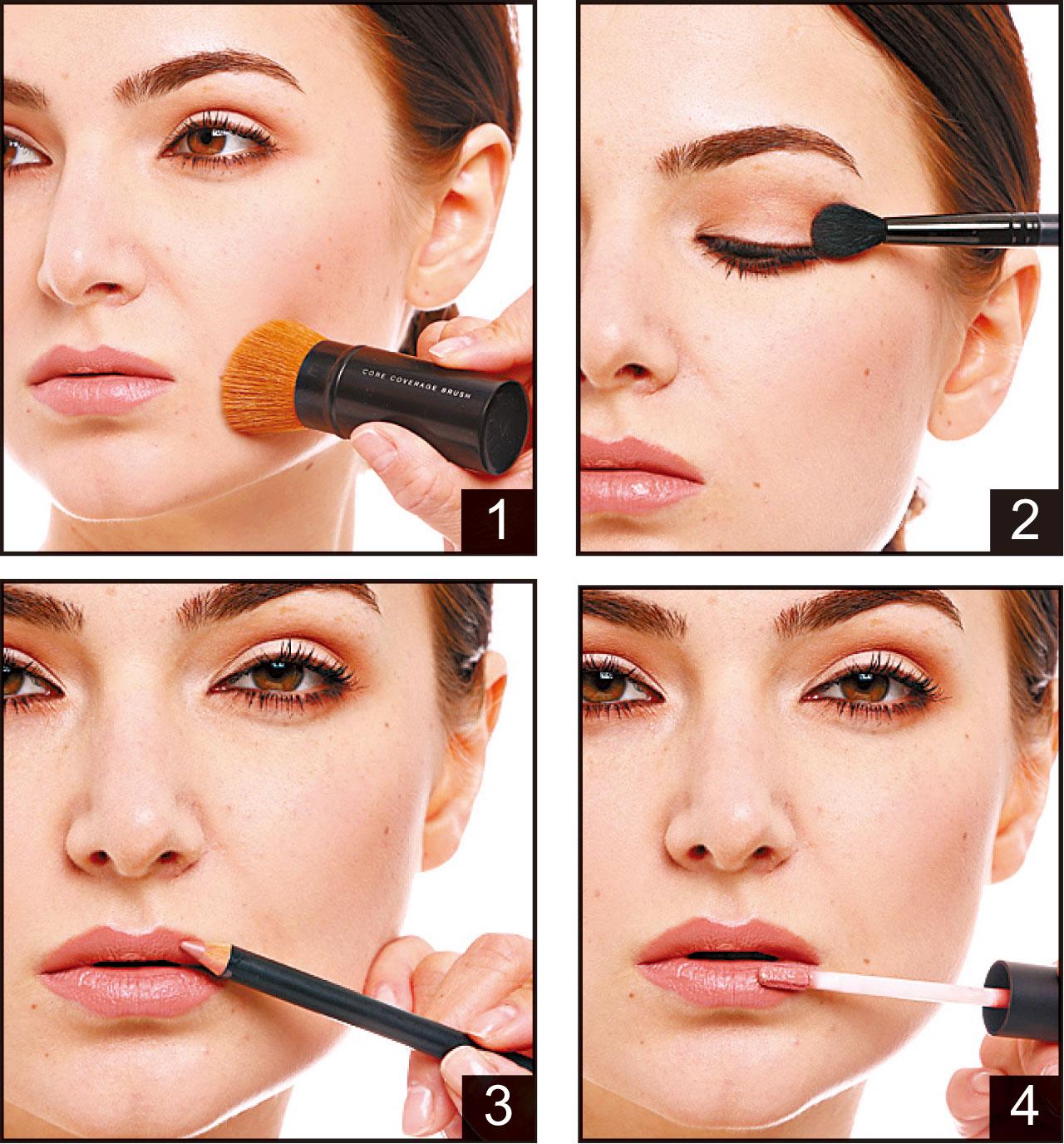 3.掃上橙啡色修容胭脂後,以唇線筆勾畫出理想唇型及遮蓋本來唇色;亦可在塗上彩唇後再作修正及加強唇部輪廊。